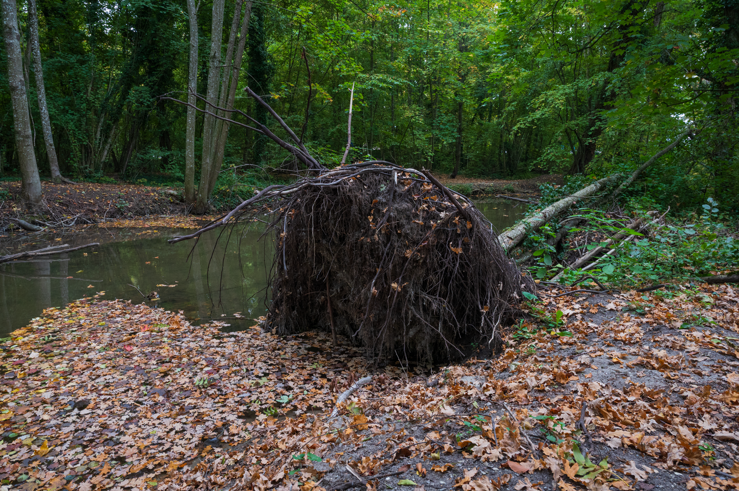 Asked Benoît, and he said there is a pipe that runs underneath here that directs and controls the river. This is near the intersection of Praz Riond, La Coudre and Froideville. We're used to thinking that rivers are above ground and natural, but in fact, we have shaped and forced them to behave otherwise.