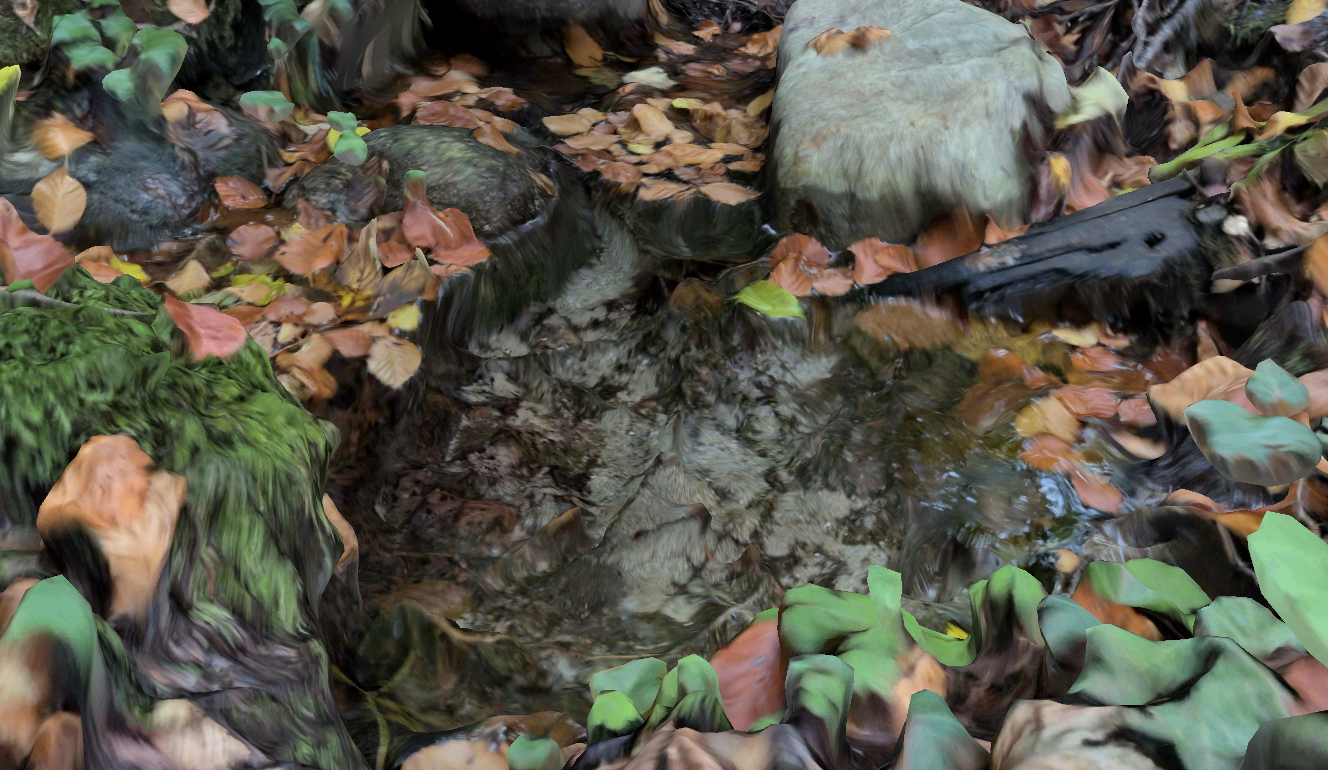 Then I tried uploading a series of images of the source to create a gaussian splat model. I was curious to see how Polycam would interpret the flow and movement of the source.